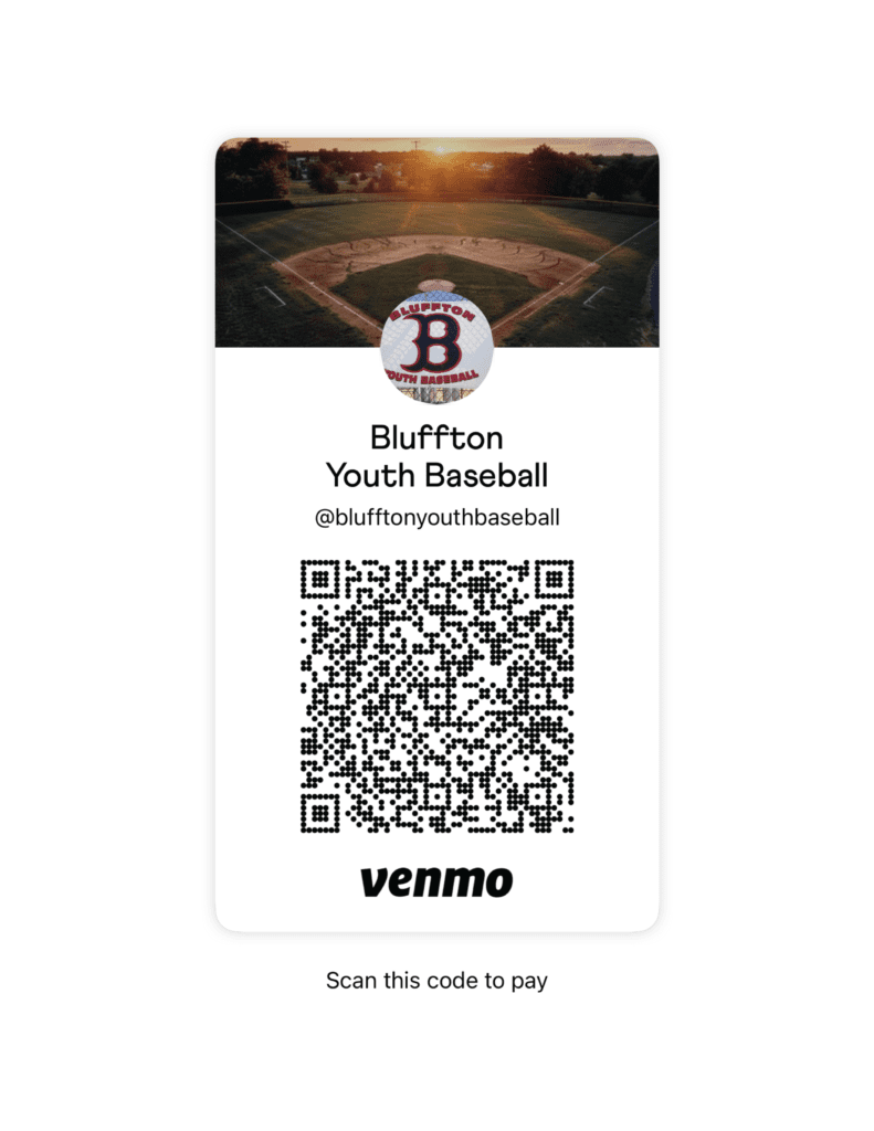 For your convenience, we have a Venmo account that you can directly transfer the registration fee to. After submitting the registration form, send $60 to @blufftonyouthbaseball.